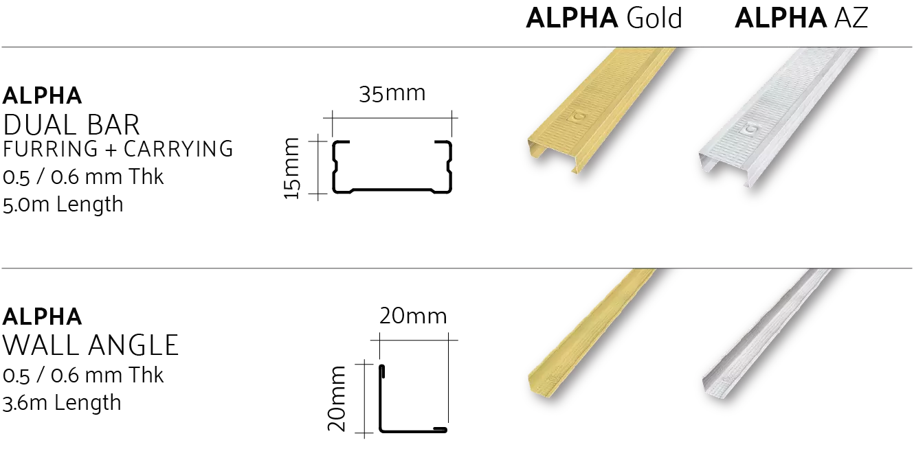 GEIGHER Alpha Frames are one of the most versatile frames in the market. With interchangeable furring and carrying channel, Alpha Dual Bars lessen multiple on-site inventory requirements while still providing a complete yet simple ceiling system. GEIGHER Alpha Frames, while smaller in frame dimension, are made thicker (at 0.5mm and 0.6mm) than normal frames. This makes Alpha Frames a concealed ceiling system that is both durable and most affordable per square meter.