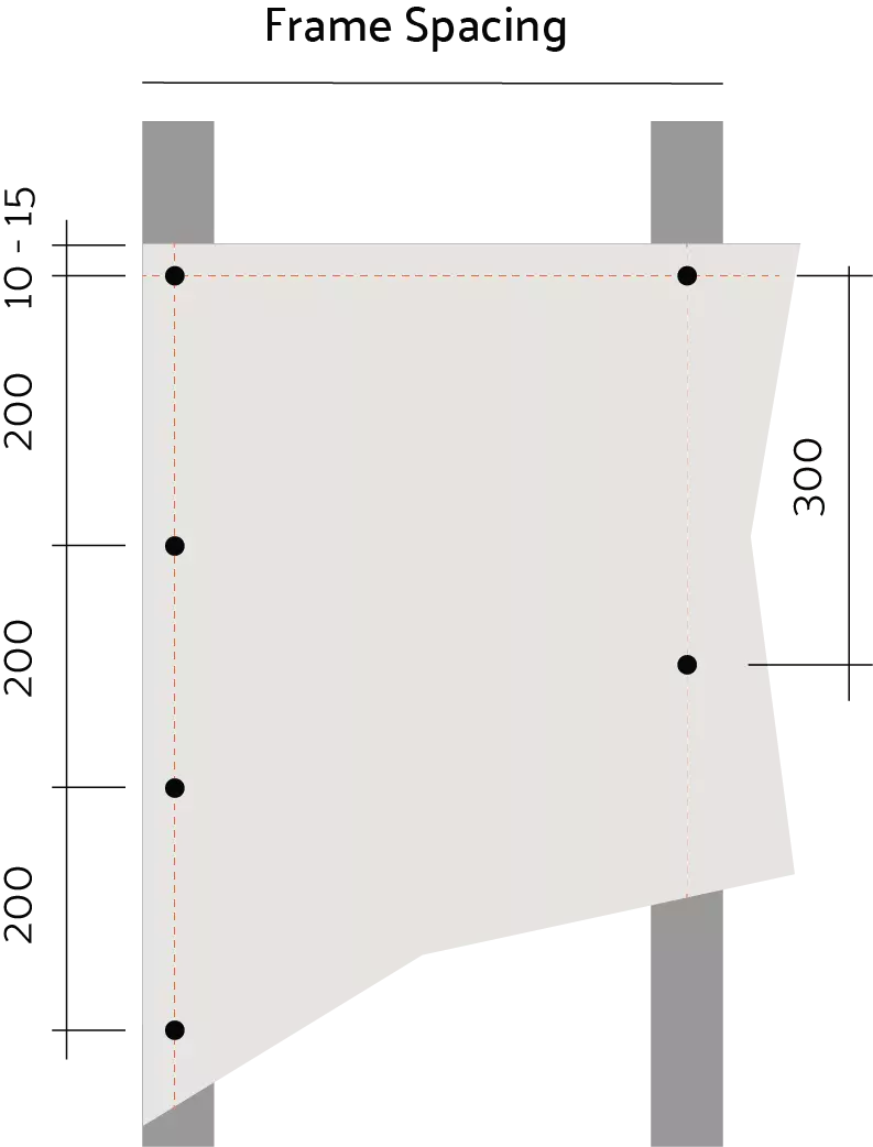 • Use #6x1-1/2” to screw 15mm EASTBERG Boards to Galvanized  Frames and 12mm to 15mm EASTBERG Boards to Wood Frames