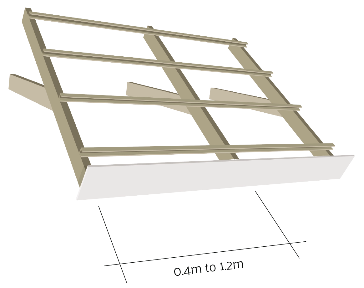 Senepa support runs perpendicular to the rafter or bottom chord and parallel to the senepa.